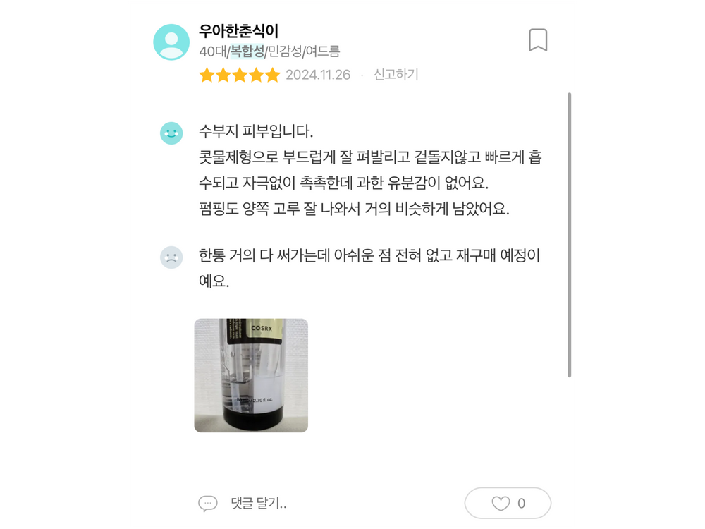 I’m almost done with one bottle, and there’s absolutely nothing I’m dissatisfied with. I plan to repurchase it.