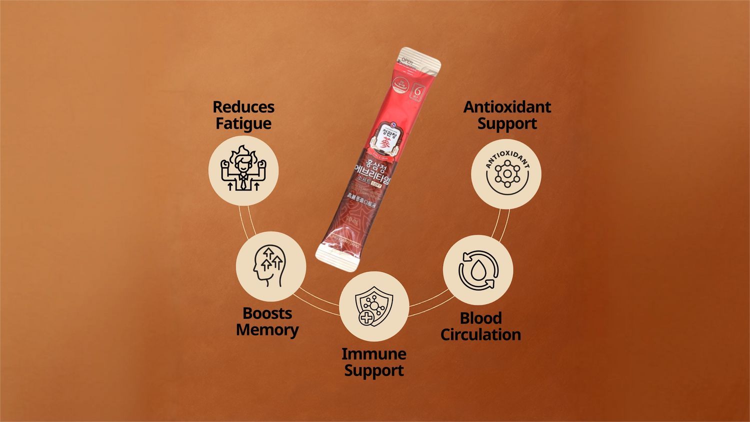 One stick a day provides the five key health benefits of red ginseng: supports immunity, reduces fatigue, improves blood circulation, enhances memory, and provides antioxidant effects.