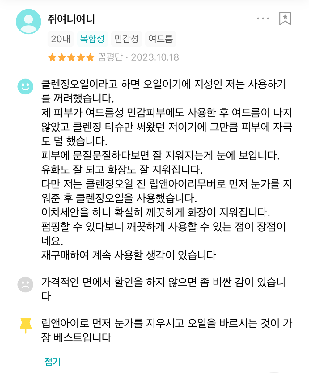 On a day when you put on full makeup for a promise with friends, you come home tired after work. 💥 Gentle, but it cleans well! 💥 Even sensitive skin can use Pure Cleansing Oil without worry about irritation. Experience safe deep cleansing for makeup and blackheads! With 99% cleaning power test, you can see the change to clean skin right away 👀. The fast milky emulsification process melts away impurities on your skin smoothly!
