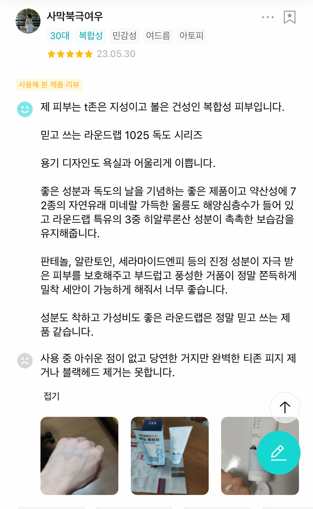 It is a good product with good ingredients, made to commemorate Dokdo Day. It contains mildly acidic Ulleungdo deep sea water that is full of 72 types of naturally derived minerals, and Round Lab’s unique triple hyaluronic acid keeps a moist, hydrated feel.